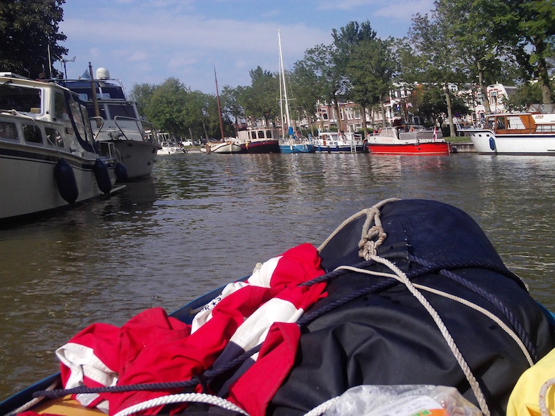 Rudernd geht es durch die Stadt. Auf beiden seiten sind Sportboote am Ufer festgemacht. Kleine, offene Boote, große Yachten. Segelboote, Motorboote. Neue und alte. Ein bunter Mix. An Land reihen sich die Häuser aneinander, von denen einige das Wort Historisch mehr als verdienen. Die gut gepflegten Brücken sind ebenfalls ein toller Anblick. All die Häuser schützen den Kanal, um Wind muss ich mich nicht mehr kümmern. Und dank der Motoryacht die mich hier her geschleppt hat bin ich auch wieder bei Kräften. Ich kann es kaum glauben. Ich hatte gezweifelt ob ich es überhaupt schaffen würde. Und wenn, da war ich mir sicher gewesen, erst am Abend. Aber jetzt war erst Nachmittag! Ich würde noch problemlos einkaufen gehen können!